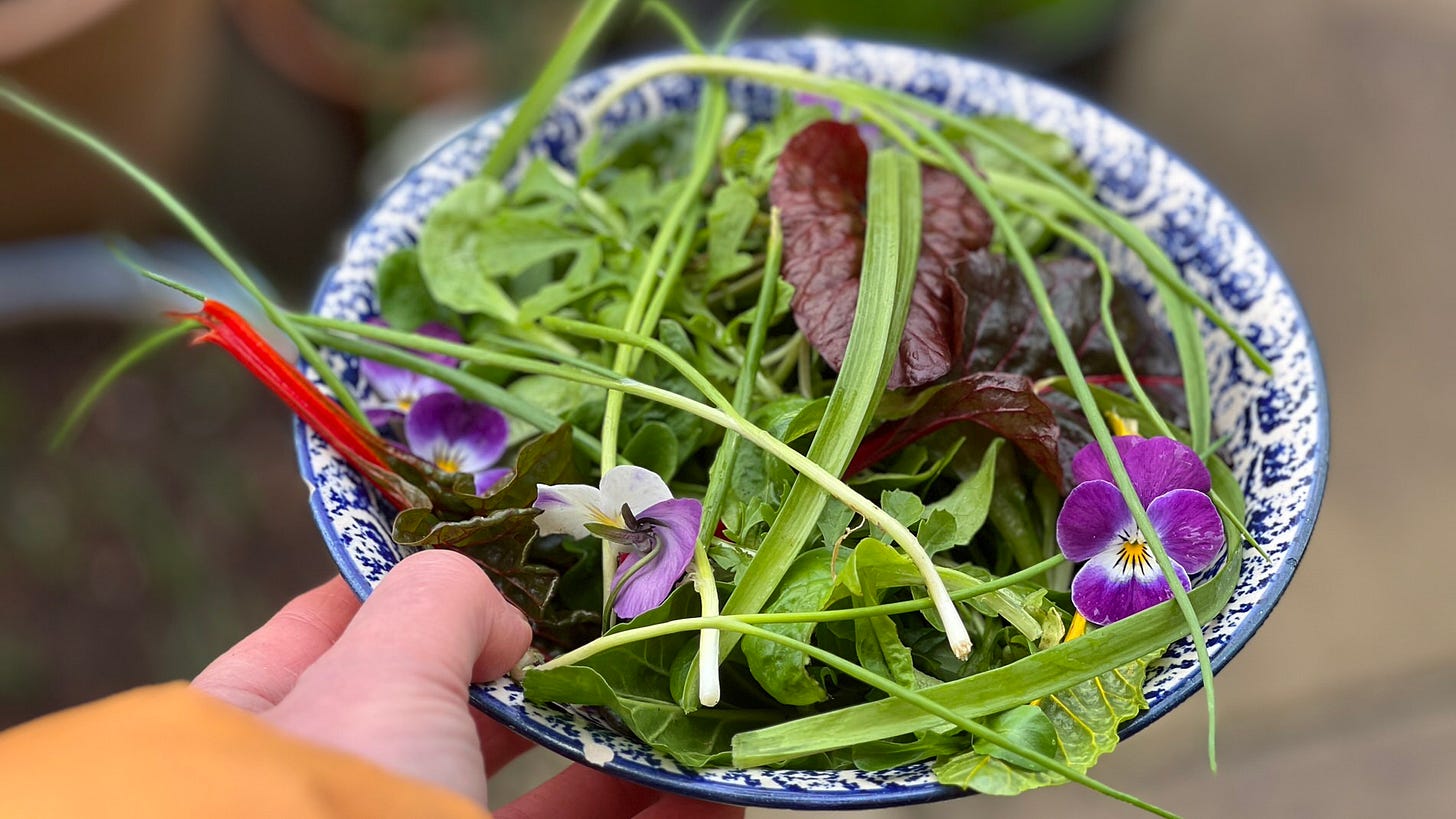 Overall, pickings from a container garden outside at this time of year where I live in the North of the UK are quite lean - but still very welcome. If time permits, I sometimes supplement them by growing sprouts or microgreens inside.